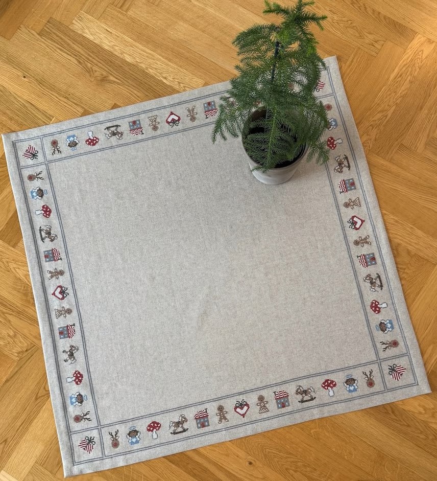 Skønt juletræstæppe med de fineste små motiver rundt i kanten fra Pomp Stitch.