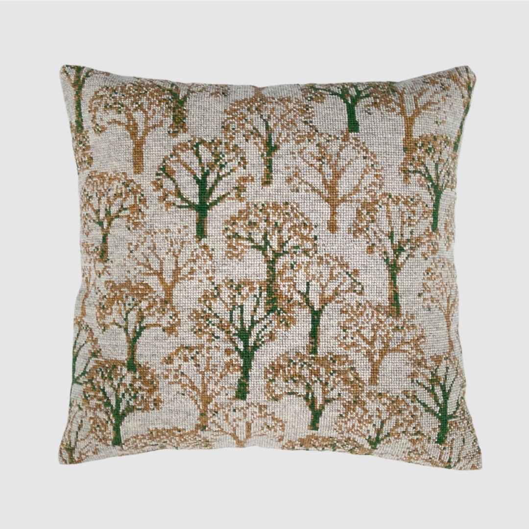 Der broderes hele korssting med én tråd på brun stramaj med 4,4 sting/cm.
