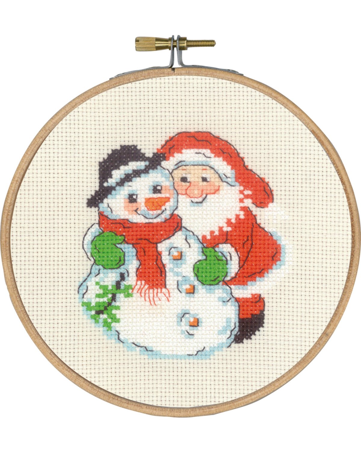 Tilføj ekstra hygge til julen med dette fine broderi Snemand og Julemand. Motivet forestiller en julemand, der giver en snemand et kram – et varmt og stemningsfuldt billede, der passer perfekt som julepynt.