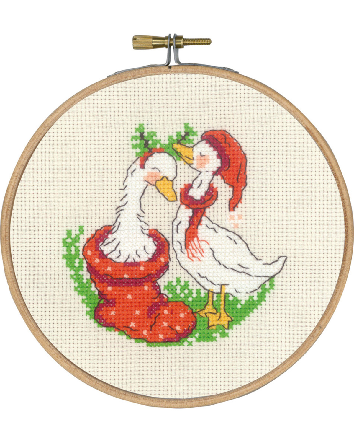 Tilføj ekstra hygge til julen med dette fine broderi Gæs. Motivet forestiller to søde gæs i en juleflirt - et varmt og stemningsfuldt billede, der passer perfekt som julepynt.