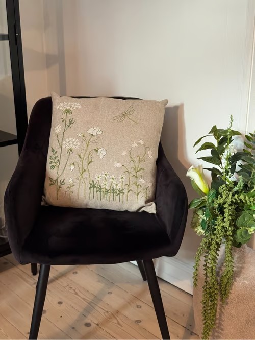 Denne pude broderes på floba med DMC garn.
