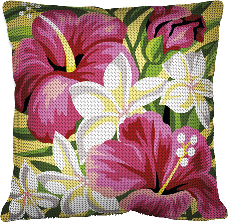Broderikittet indeholder: Akryl garn, påtrykt grov stramaj , nål, og instruktion.