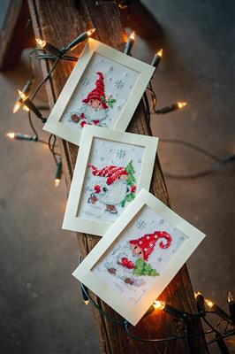 Brug de fine billeder i de medfølgende kort eller ram dem ind til skønne julebilleder. Hver pakke indeholder materialer til 3 forskellige julekort, alle broderet på Aida. Der broderes primært med korssting og stikkesting, hvilket gør projektet både sjovt og overskueligt.